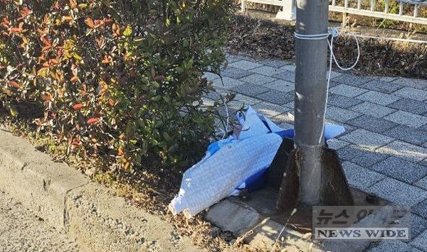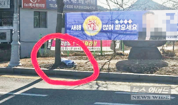 ▲신정훈 국회의원의 새해인사 현수막이 훼손된 채 방치돼 있다.(신정훈 의원 측)