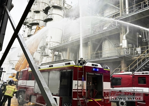 ▲여수산단 금호피앤비화학 공장에서 19일 화재가 발생해 노동자 2명이 화상을 입었다.(전남소방본부)